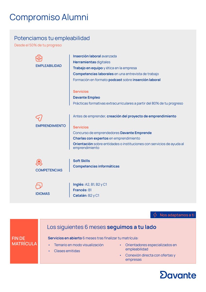 Solo en Davante tienes acceso, desde el primer día, al curso Competencias 360º, diseñado específicamente para mejorar tu empleabilidad y que no encontrarás en ningún otro centro.
